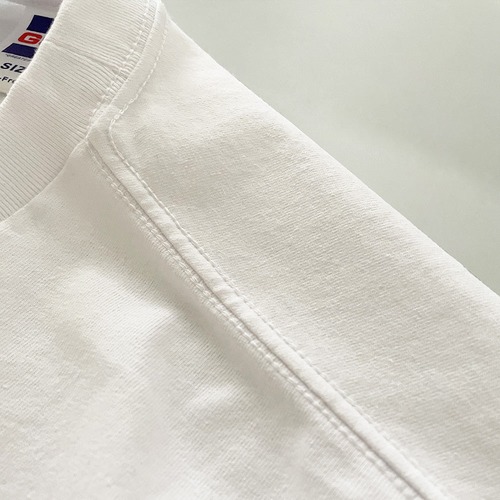 ブランド名をプリントしたロゴTシャツは、程よくゆったりしたシルエットで、シンプルながらもリラックスした雰囲気が感じられます。